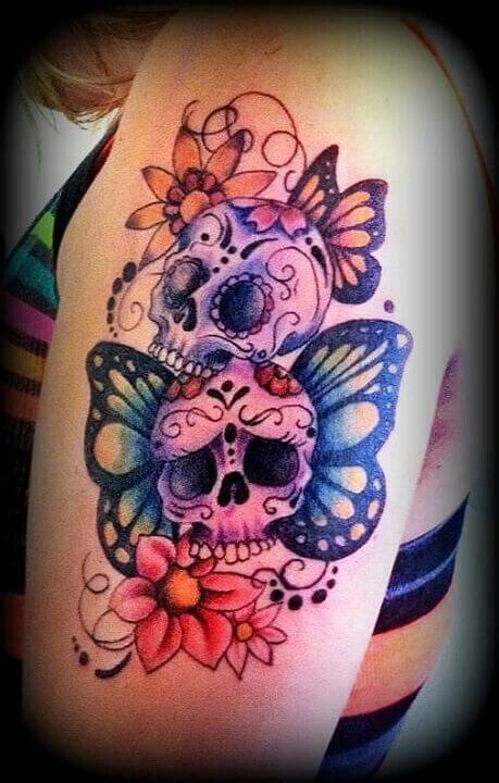 I luoghi più comuni per fare il tatuaggio dei teschi messicani sono la spalla, la gamba e la schiena. Ma cosa stiamo a parlarne se puoi vederlo? Guarda queste immagini.